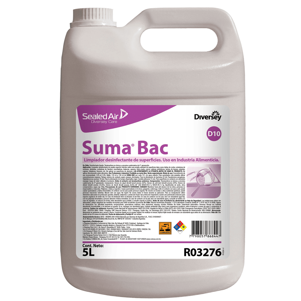Producto para la limpieza y desinfección a base de amonio cuaternario de 5° generación en un solo paso de todas las superficies en establecimientos donde se elaboran alimentos.