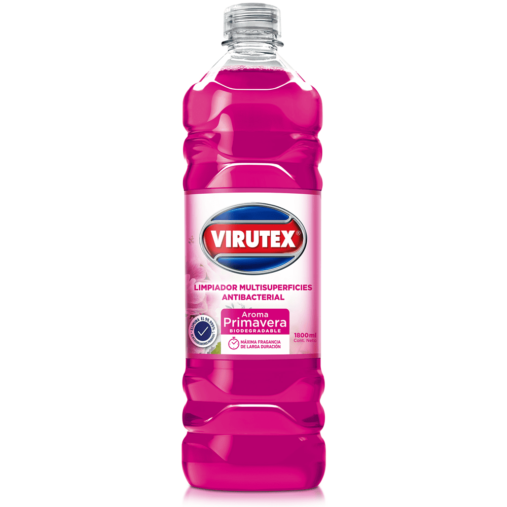 Producto biodegradable con pH neutro y fórmula antibacterial que elimina el 99.99% de hongos y bacterias de todo tipo de superficie lavable dejando una prolongada fragancia a Primavera.