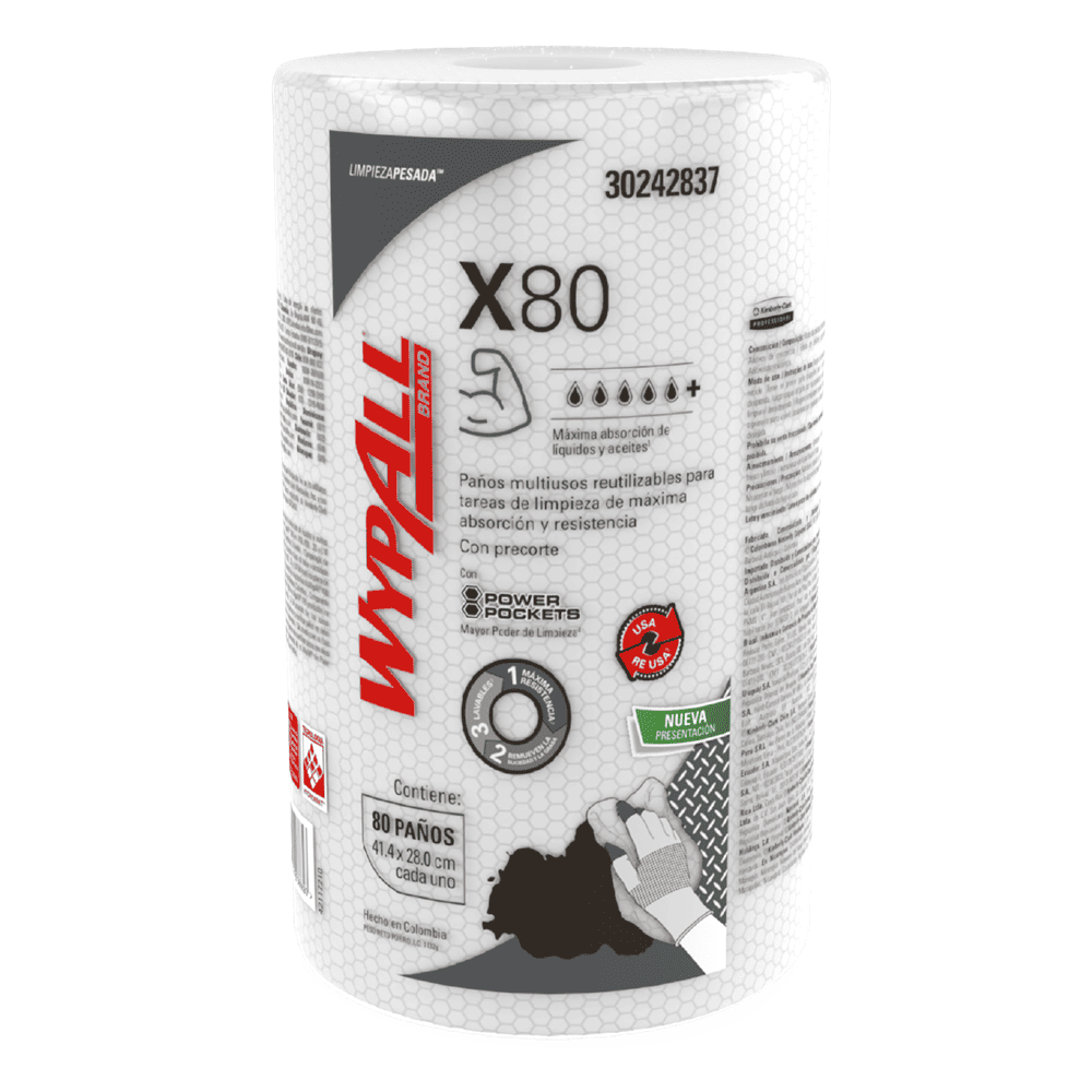 Paños multiusos (42 cm x 28 cm) reutilizables con precorte, hechos de fibras de celulosa y polipropileno, que brindan una máxima absorción de líquidos y aceites, gracias a su Tecnología Hydroknit™.