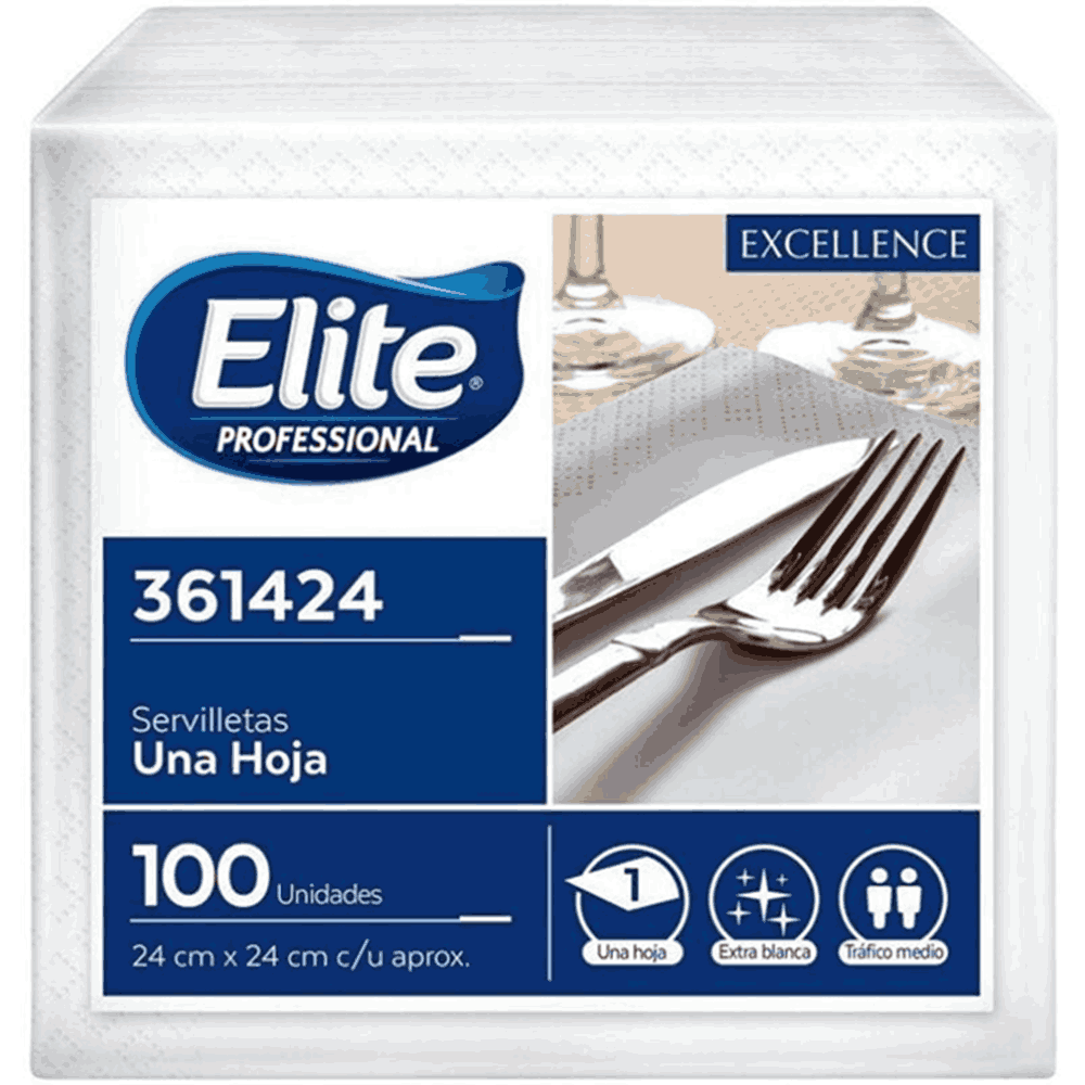 Servilletas de una hoja extra blancas para tráfico medio de 24 cm x 24 cm.